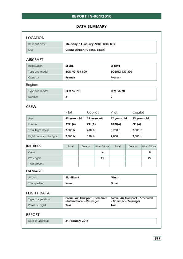 Report IN-001/2010, B738/B738 ground gollision, Girona Spain, 14 Jan 2010