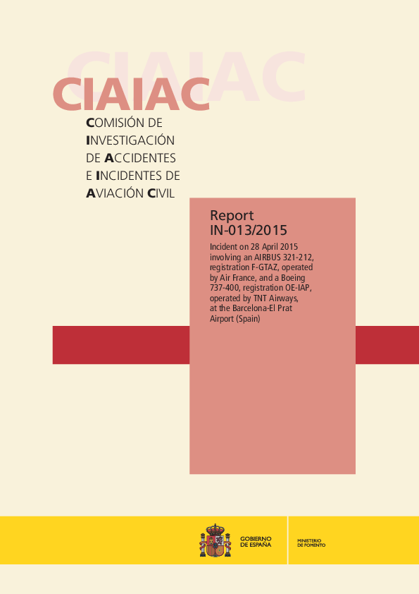Report IN-013/2015 A321/B734, Barcelona, 2015