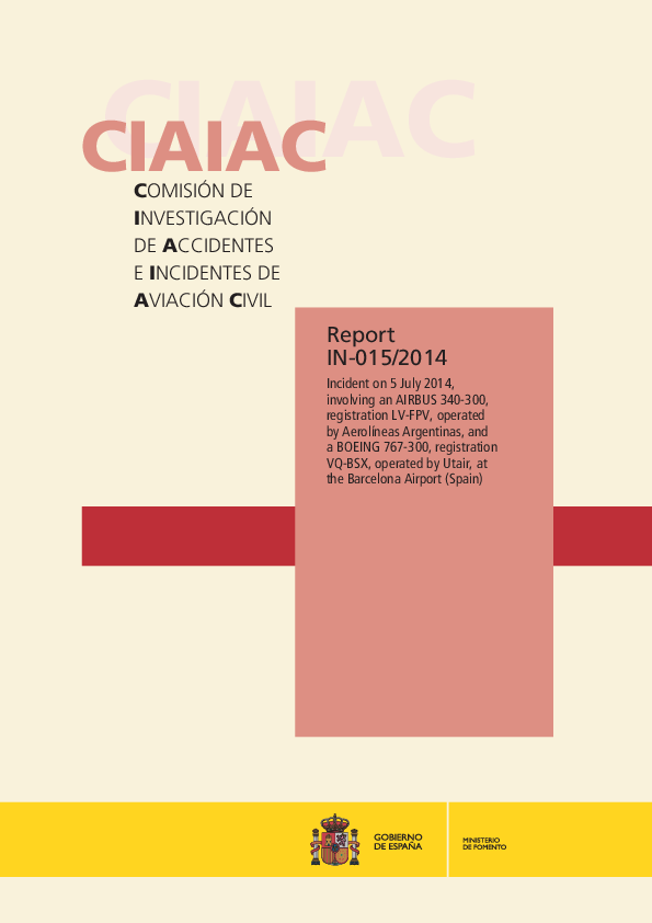 Report IN-015/2014, A343/B763, Barcelona, 2014