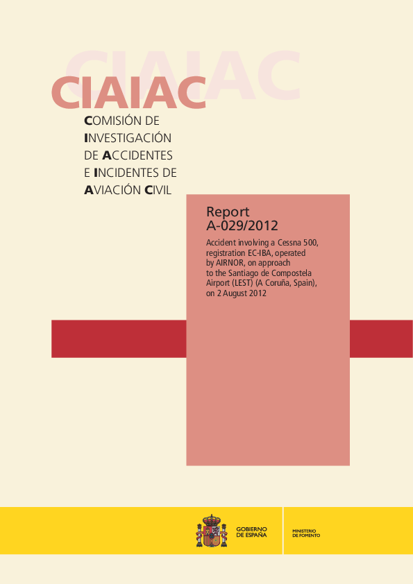 Report A-029/2012 accident involving C500 on approach to Santago Spain 2012