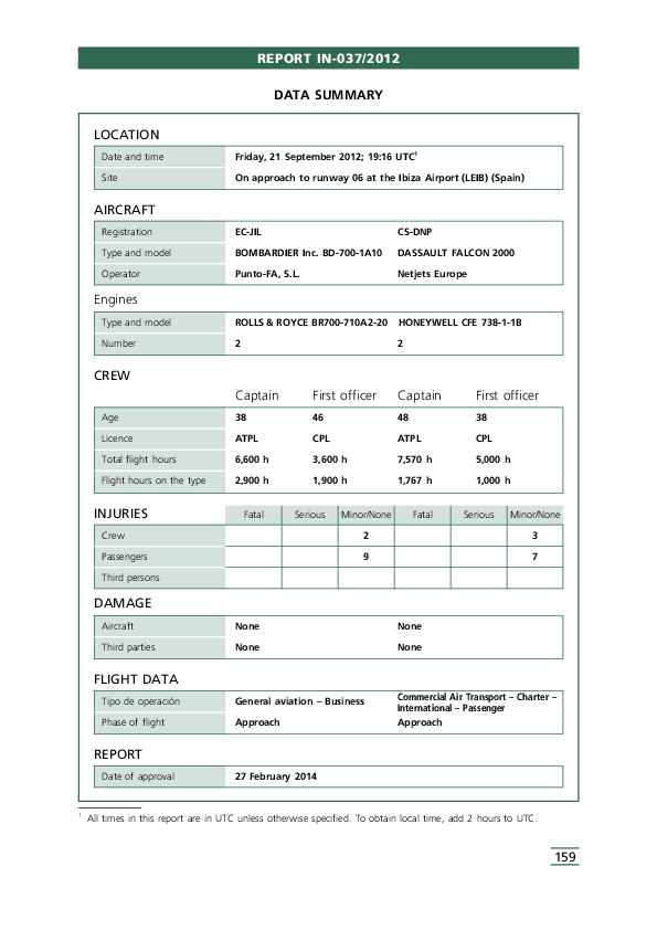 REPORT IN-037/2012, loss of separation between GLEX and F2TH, Ibiza, Spain, 21 Sept. 2012