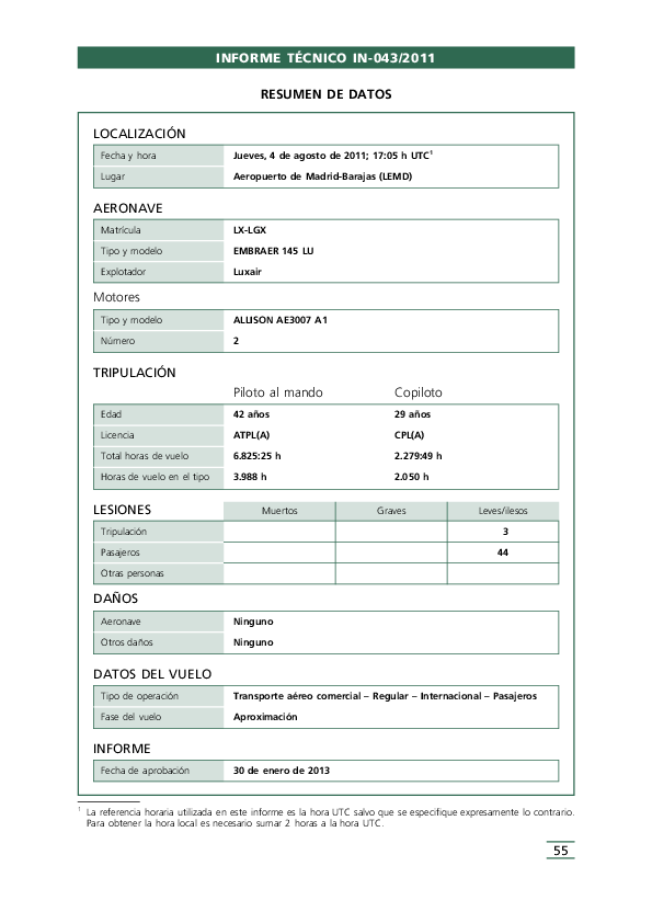 Report IN-043/2011, E145 level bust, north of Madrid Spain, 4 Aug 2011