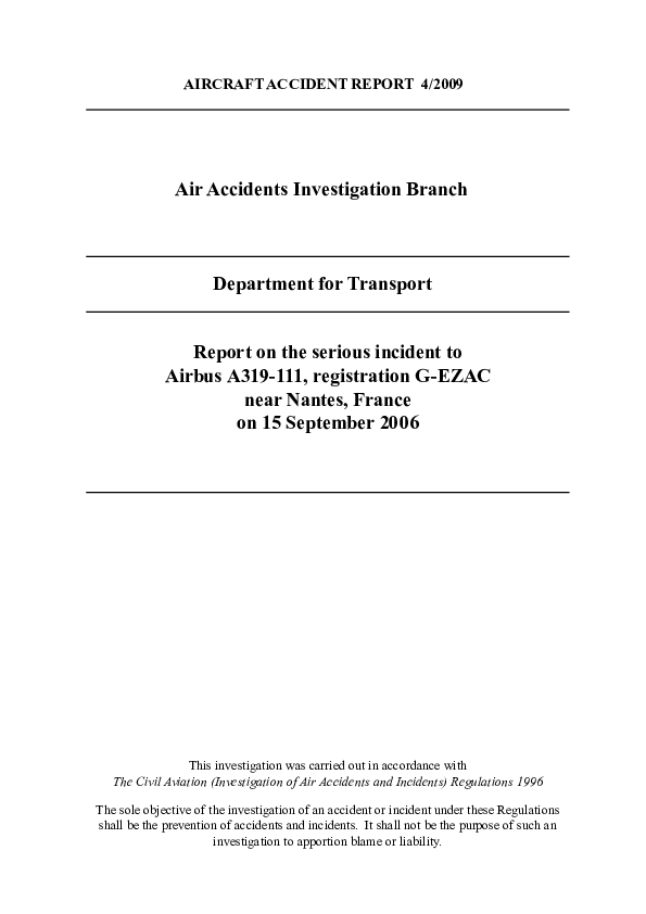 Report (4/2009) on the serious incident to Airbus A319 near Nantes, France on 15 S