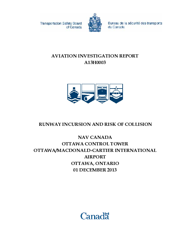 Report A13H0003: Runway Incursion and Risk of Collision - DHC8 and Piaggio 180 Ottawa 1 Dec 2013