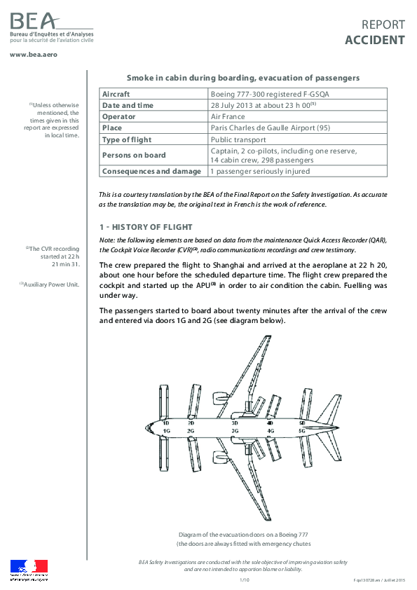 Report Accident f-qa130728.en / Juillet 2015 B773 Paris CDG 2013