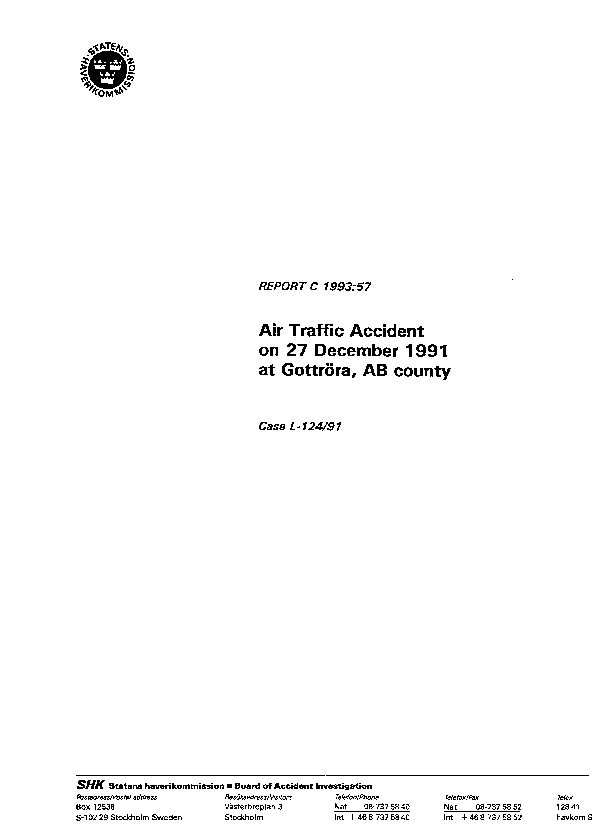 Report C 1993:57, MD-81 Accident on 27 December 1991, Sweden