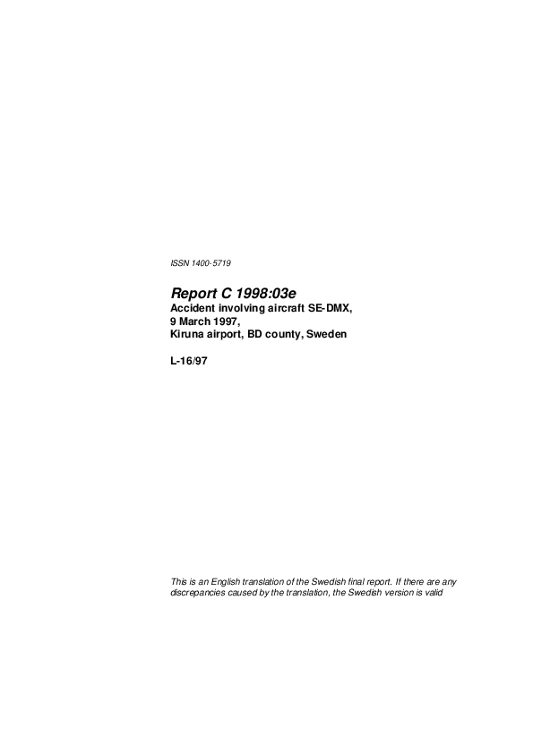 Report C 1998:03e - MD81, Loss of Directional Control, Kiruna Sweden, 9 March 1997
