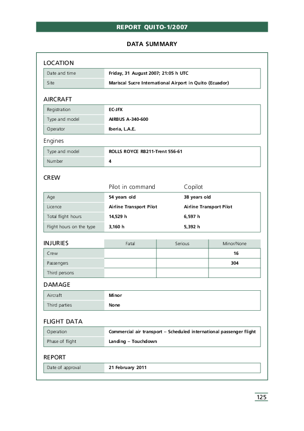 Report QUITO - 1/2007 Addenda Bulletin 2/2011 (A346 hard landing) Quito, 31 Aug 2007