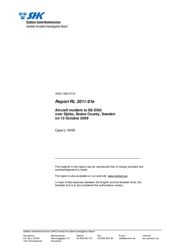 Report RL 2011:01e, loss of separation, Malmo Sweden, 13 October 2009