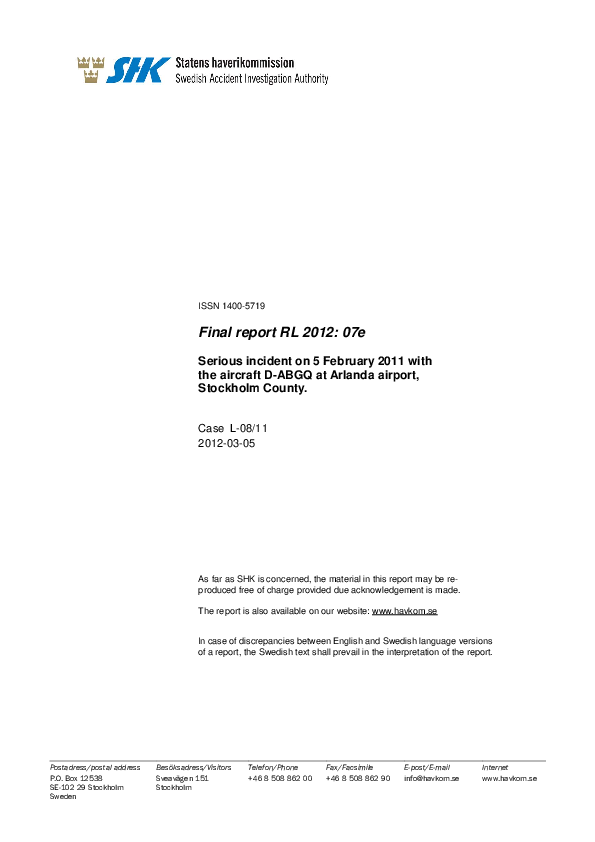 RL 2012: 07e, A319, Runway incursion at Stockholm Arlanda, Sweden, 05 Feb 2011