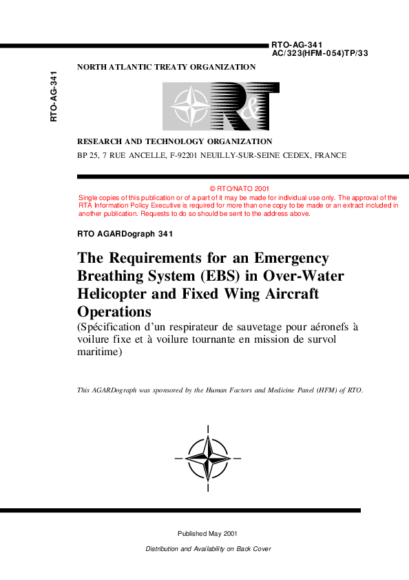RTO AGARDograph 341: The Requirements for an Emergency Breathing System (EBS) in Over-Water Helicopt