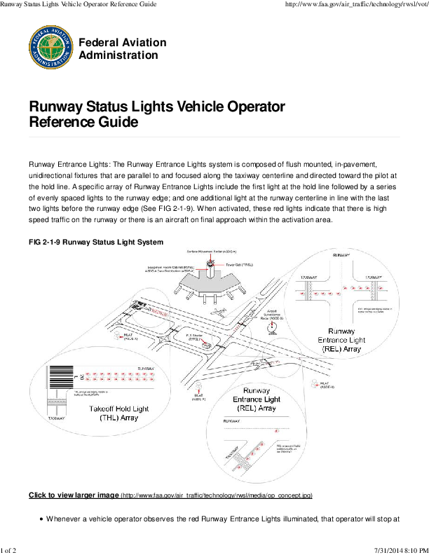 Runway Status Lights: FAA Vehicle Operator Reference Guide