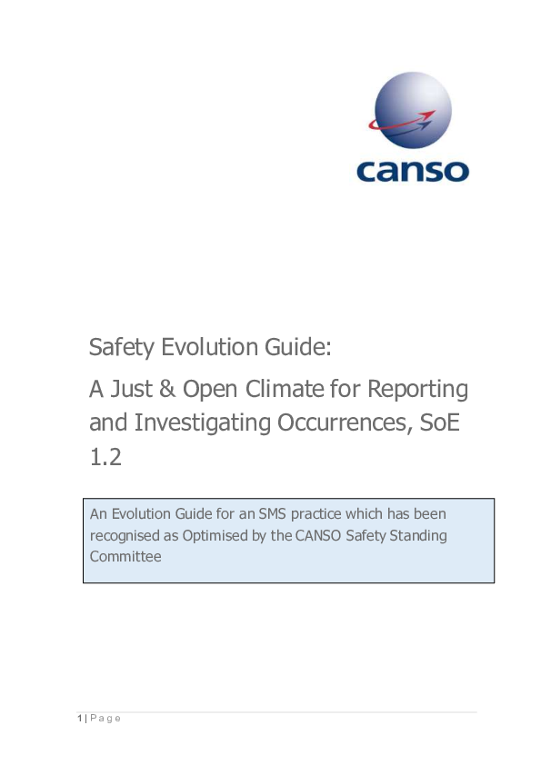 Safety Evolution Guide: A Just & Open Climate for Reporting and Investigating Occurrences, SoE 1.2
