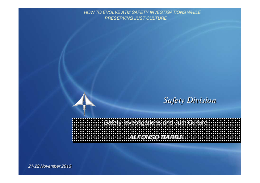 This presentation contains informations about the regulatory framework in Spain/ AENA, the way in which the reporting is made and the Just Culture integration in AOI processes.