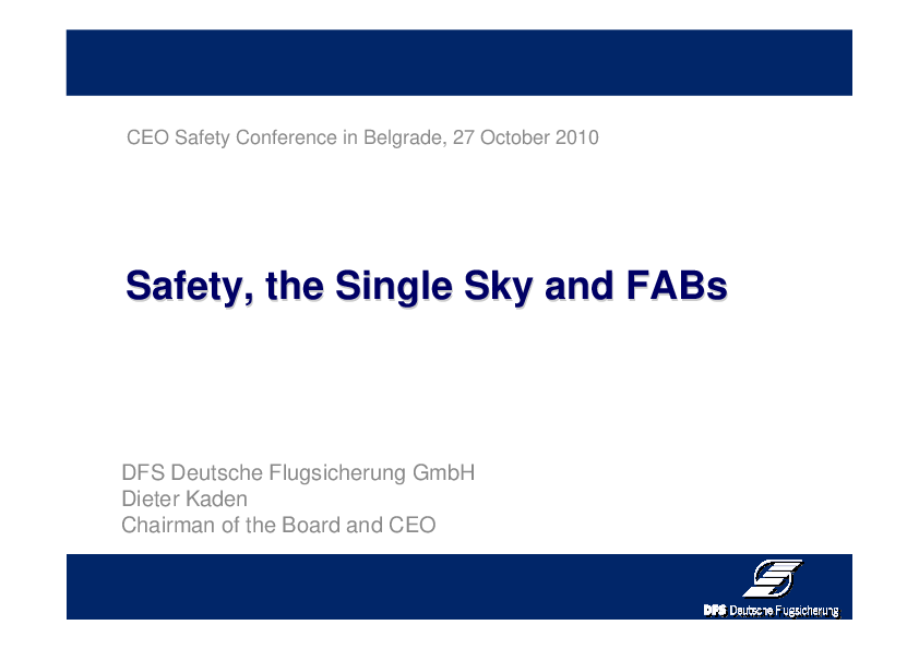This presentation covers the following topics: the history of safety regulation, SES implementation, safety within FABEC, EU key performance indicators.