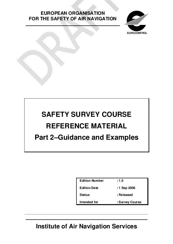 This document provides reference material for the conduct of Safety Surveys by Air Navigation Service Providers (ANSP). It is the second of two such documents and provides guidance on achievement of the ESARR3 requirement for ANSPs to conduct Safety Surveys as part of the Safety Assurance process (Level 2). The document also provides illustrative examples (Level 3).