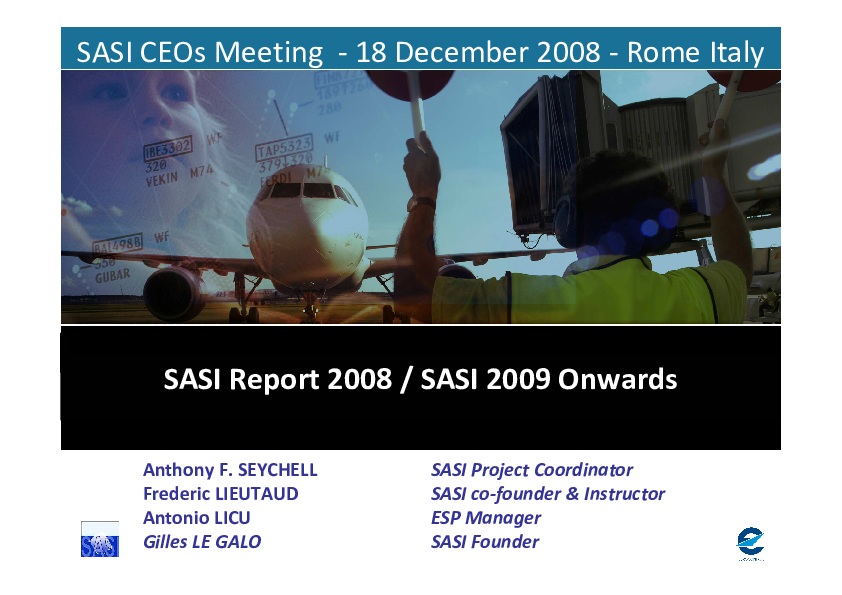 SASI CEOs Meeting - SASI Report 2008/SASI 2009 Onwards