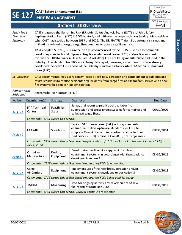 SE 127 R4.5 Remaining Risk - Cargo Fires - Fire Management