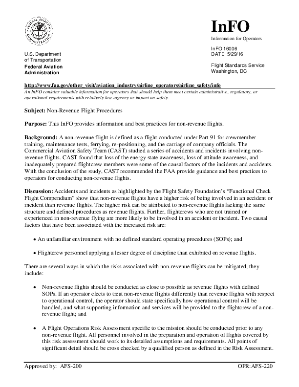 InFO 16006 Non-Revenue Flight Procedures