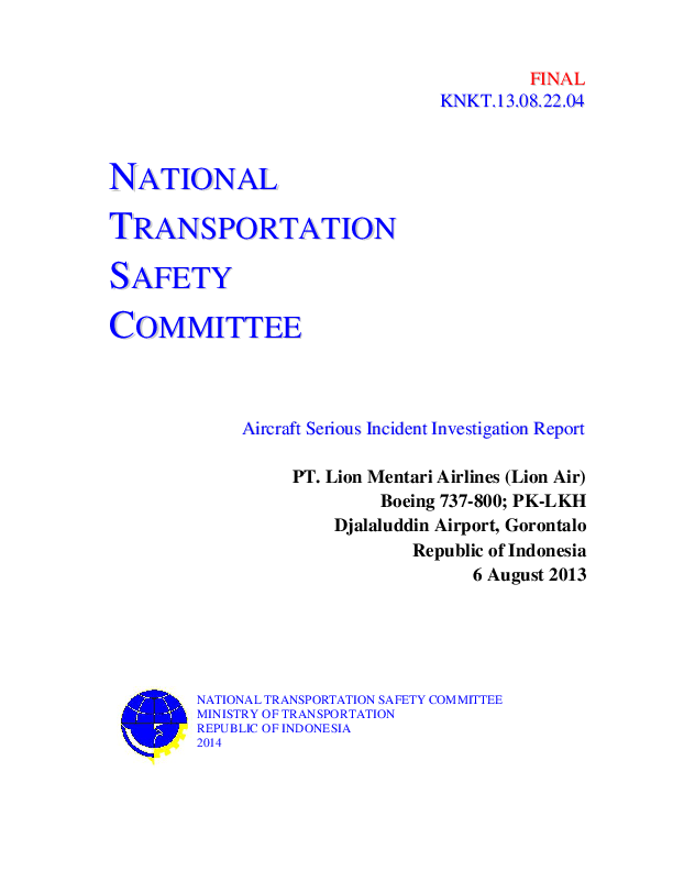 Serious Incident Investigation Report Boeing 737-800 PK-LKH Djalaluddin Indonesia 6 Aug 2013