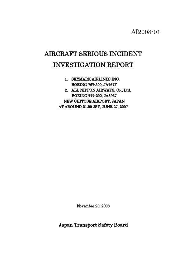 Serious Incident Report AI 2008-01, Runway Incursion, B763 & B772, New Chitose Japan, 27 June 2007
