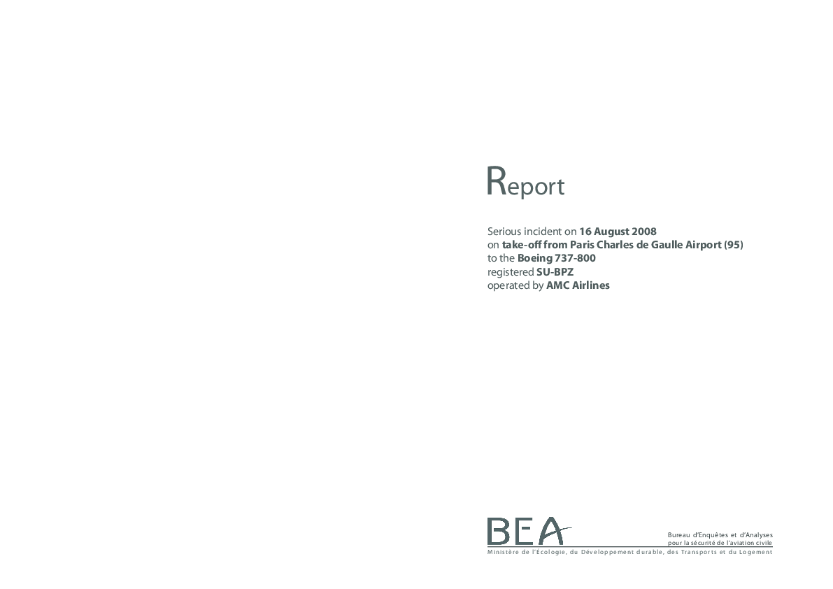 Serious Incident Report, B738 take-off at Paris CDG, 16 Aug 2008