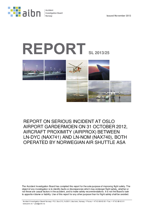 Serious Incident SL 2013/25, Loss of Separation B738/B738, Oslo, Norway 31 Oct 2012