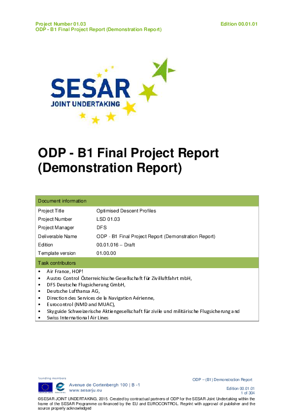 SESAR ODP - B1 Final Project Report (Demonstration Report) - Optimised Descent Profiles