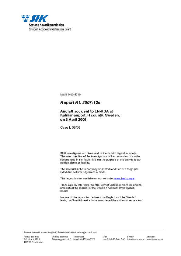 SHK Report RL2007-12e DH8D Kalmar