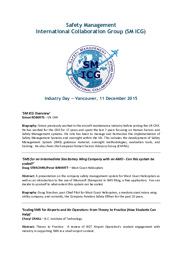 SM ICG Industry Day 11 December 2015 - Abstracts and Bios