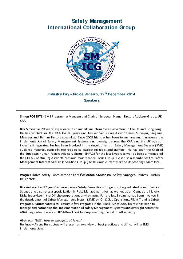 SM ICG Industry Day, 12 December 2014, Speaker Bios