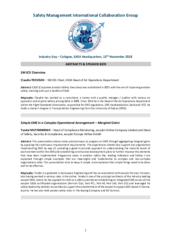 SM ICG Industry Day 13 Nov 18 - Abstracts and Speaker Bios