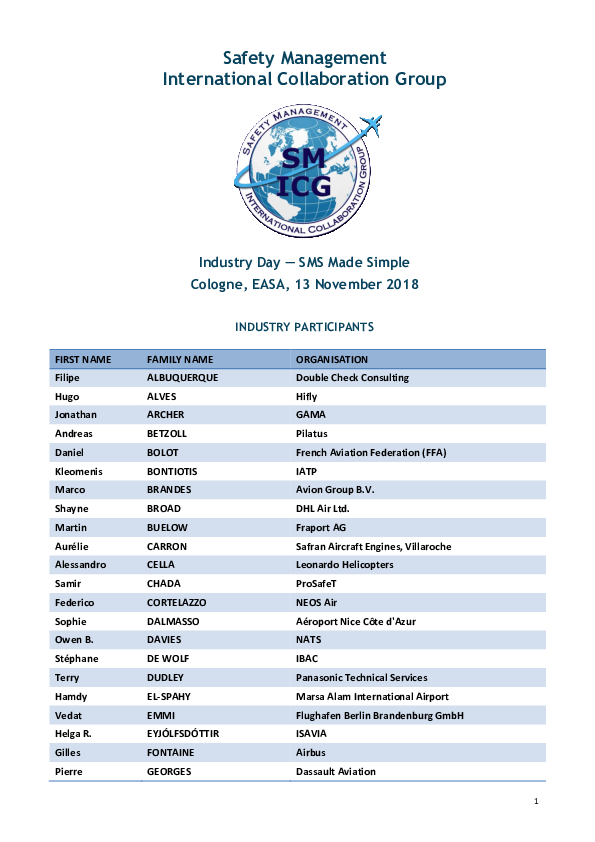 SM ICG Industry Day 13 Nov 18 - Participants list