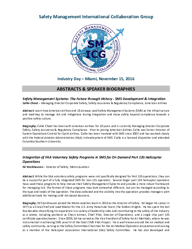 SM ICG Industry Day 15 May 2016 - abstracts and bios