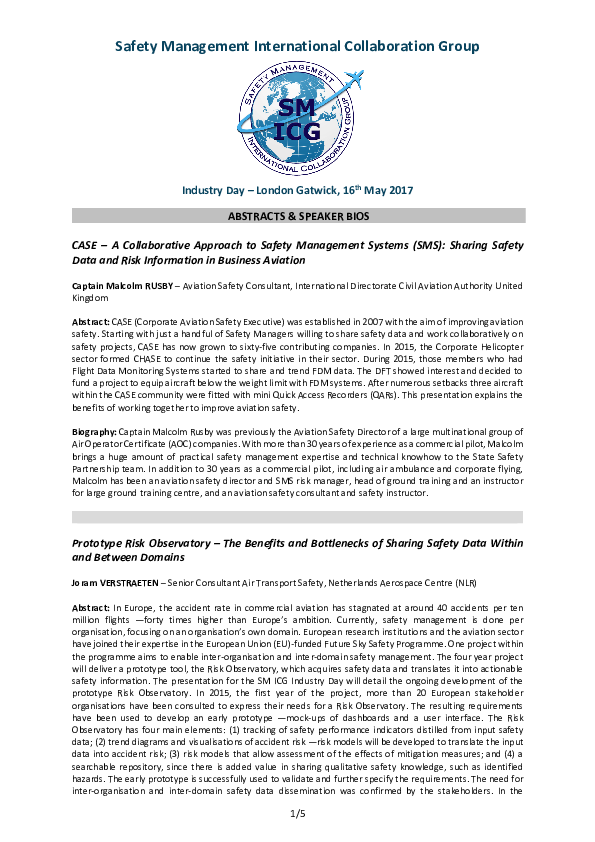 SM ICG Industry Day 16 May 2017 - Abstracts and Bios