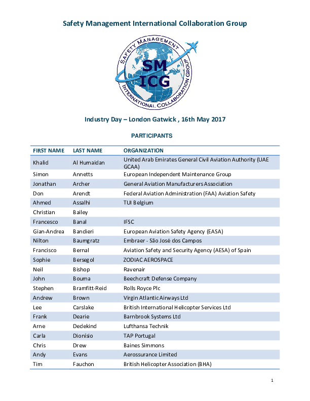 SM ICG Industry Day 16 May 2017 - Attendee List