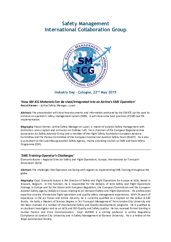 SM ICG Industry Day, 22 May 2015 - Abstracts and Bios