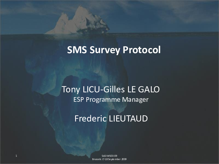 This presentation contains informations related to SMS Survey Protocol, like where does it come from, the structure of SMS Protocol and the report structure.