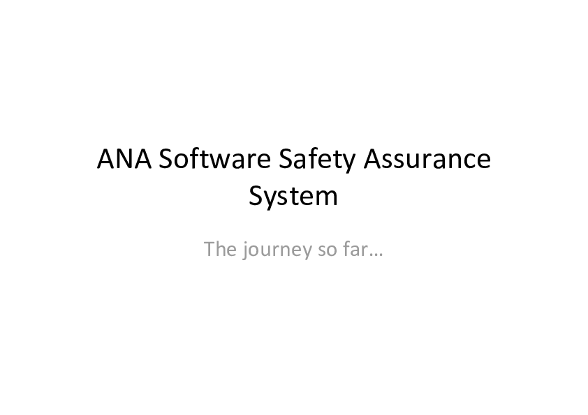 Software Safety Assurance System- The Journey So Far