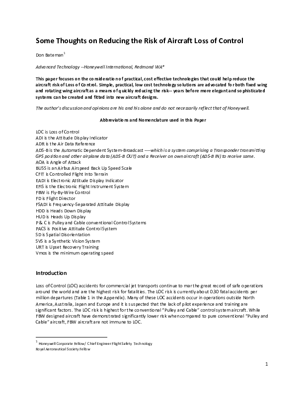 Some Thoughts on Reducing the Risk of Aircraft Loss of Control