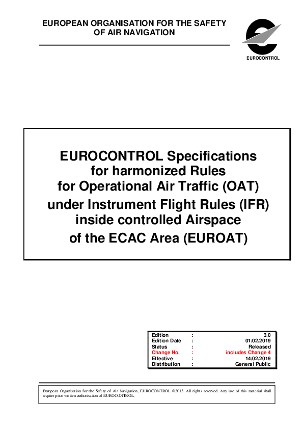 Specifications for harmonized Rules for OAT under IFR inside ECAC controlled Airspace (EUROAT)
