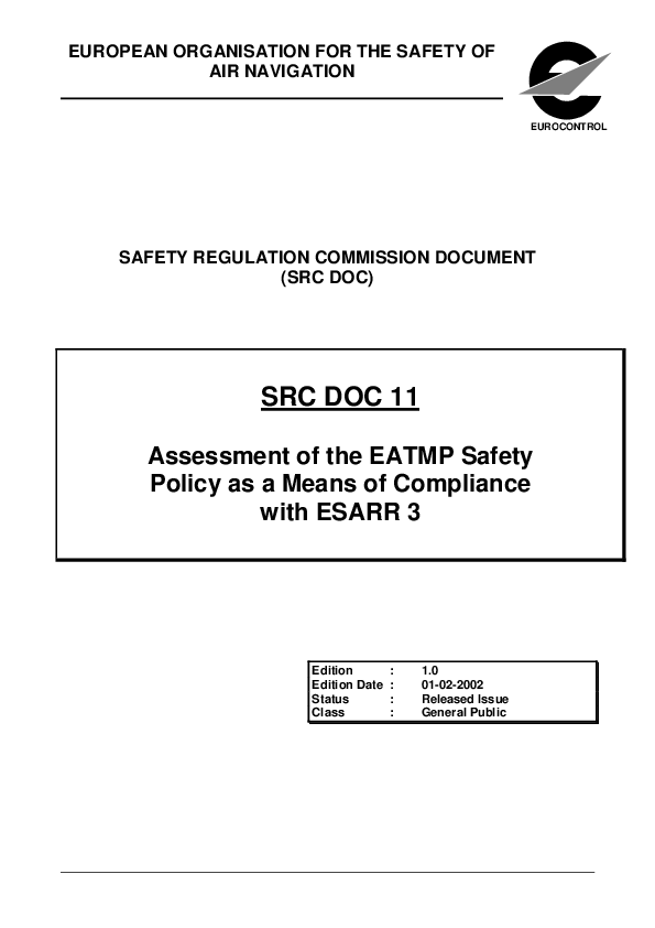 SRC DOC 11- Assessement of the EATMP Safety Policy as a Means of Compliance with ESARR 3