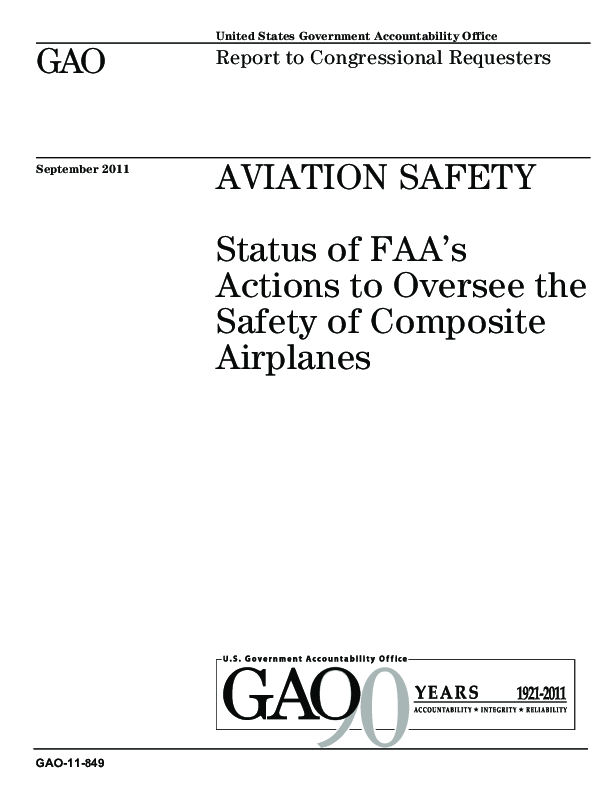 Status of FAA's Actions to Oversee the Safety of Composite Airplanes. Report to Congressional Requesters GAO-11-849, published September 2011