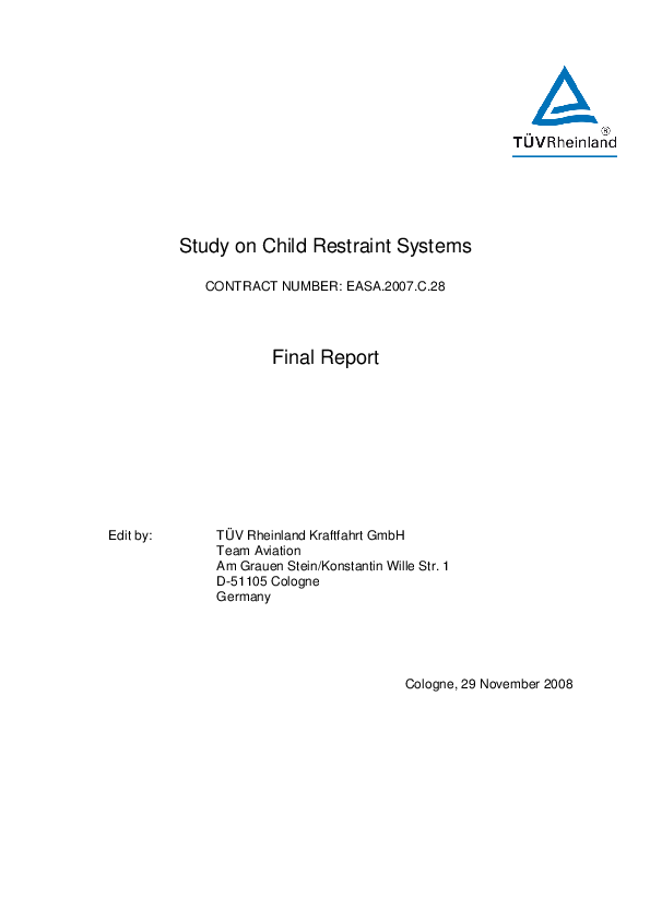 report commissioned by EASA with special focus on restraint of children under the age of 2.