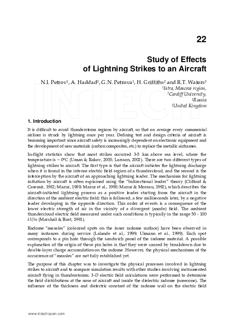 A study on the effects of lightning strikes to aircraft, Chapter 22 of 'Recent Advances in Aircraft Technology', edited by R. K. Agarwal, 2012.