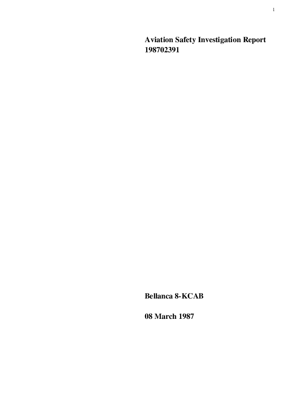Summary Report of the Investigation by the Australian Bureau of Safety Investigation into the fatal accident to a Bellanca 8-KCAB on 08 March 1987