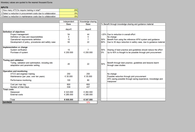 Supporting Excel spreadsheet for the Cost Framework model for APW