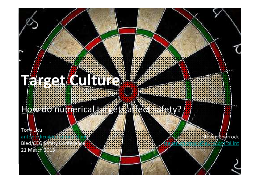 This presentation introduces the Target Culture and focuses on how numerical targets impact safety and highlights the idea that targets should be fixed and welcomed in a company's key performance indicators.