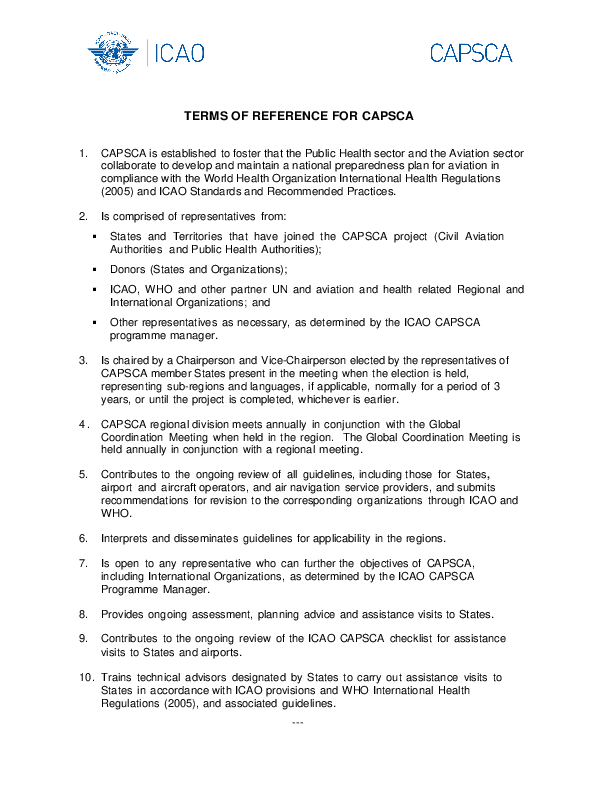 Terms of Reference for CAPSCA