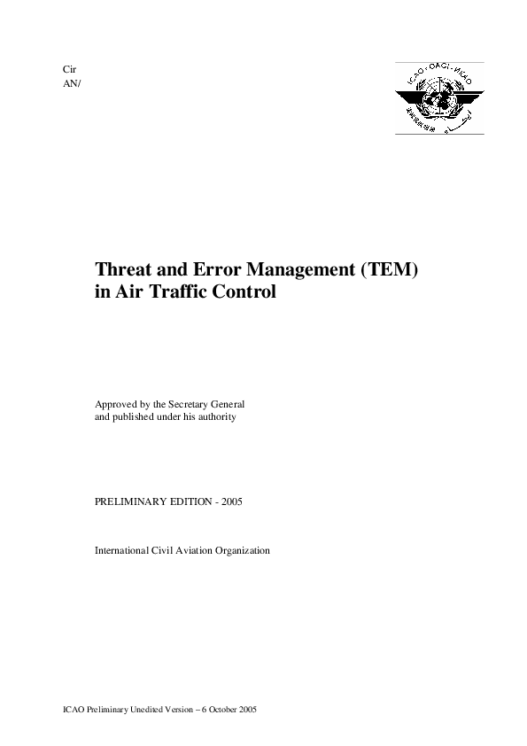 Threat and Error Management (TEM) in Air Traffic Control - PRELIMINARY EDITION - 2005
